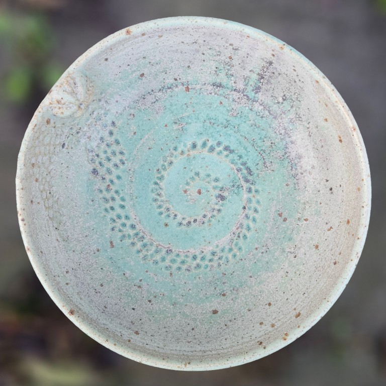 Fossilserien er inspireret af ting, jeg finder ved stranden. Jeg har boet ved vandet hele mit liv og kan ikke lade være med at kigge ned, når jeg går tur ved stranden. Søpindsvin og andre fund fra strandturene præger fossilkrukkerne – helt konkret, da jeg bruger stenene til at trykke ind i det våde ler, kort tid efter krukken er drejet.