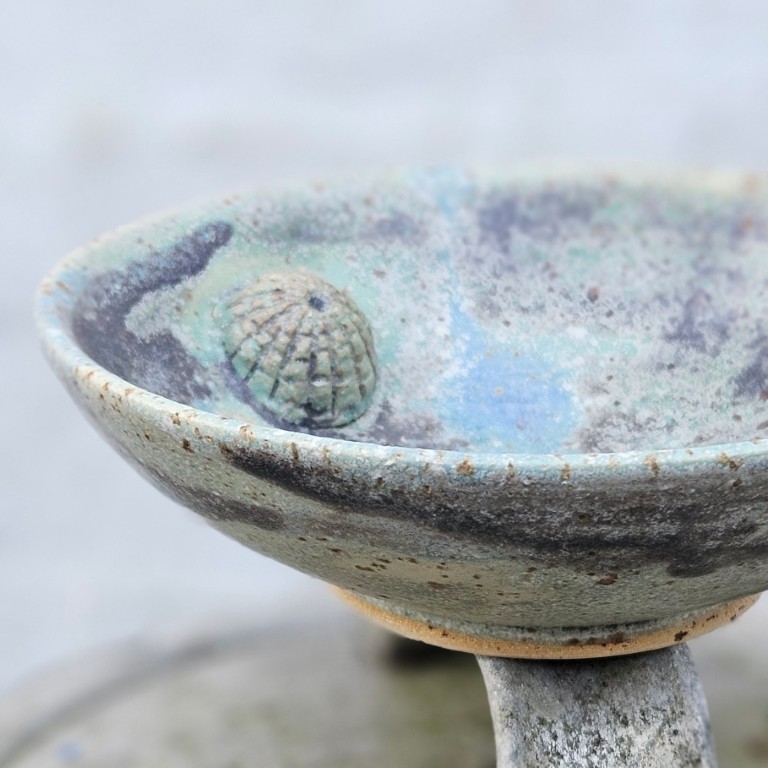 Her får du en lille, flad skål. Til småting, oliven, snacks eller snolder? Skålen er hånddrejet i lavaler og præget i hånden af mig. Foruden aftryk af søpindsvin og strandsten er skålen dekoreret et modelleret søpindsvin.