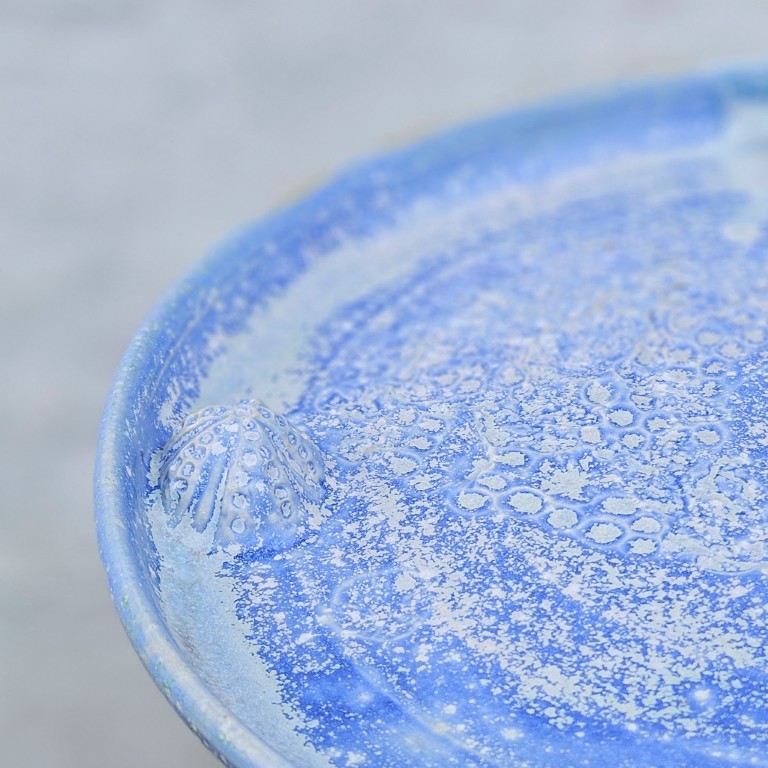 Fadet er hånddrejet og prægede i hånden af mig. Foruden aftryk af søpindsvin og strandsten er fadet dekoreret med små, modellerede søpindsvin. Hver enkelt fader helt unik og der findes ikke en helt magen til. Det du ser på billedet, er den, du køber.