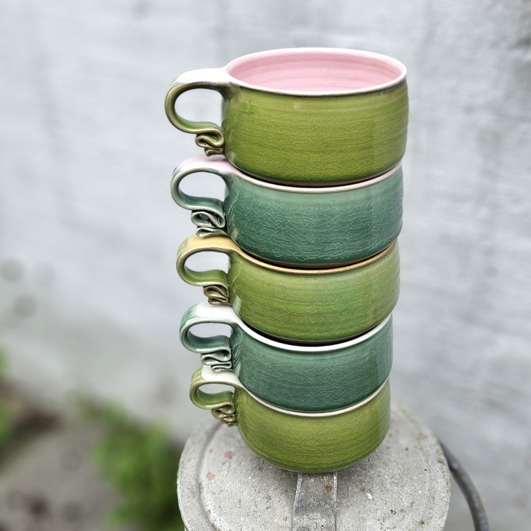 Snirkelkopperne er hånddrejede og hver enkelt hank er trukket i hånden af mig, uden opskrift. Du får derfor en helt unik kop som ikke findes magen til. Nogle har store hanke, andre har små. Nogle har mange snirkler og krøller, andre blot en enkelt. Find din favorit eller hold øje med siden, der kommer løbende nye til.