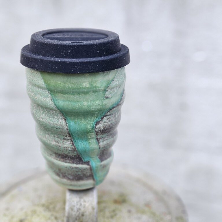 En unik kop og dejligt rummelig kop til at have med på farten! På tur i skoven, i bilen el.lign. Et både bæredygtigt og æstetisk alternativ til den sædvanlige plastik-ta’ med kop. Vælg din egen favorit, de er alle lidt forskellige i form og farve. Fælles for dem alle er, at de er drejet riller så de ligger rigtig godt i hånden.